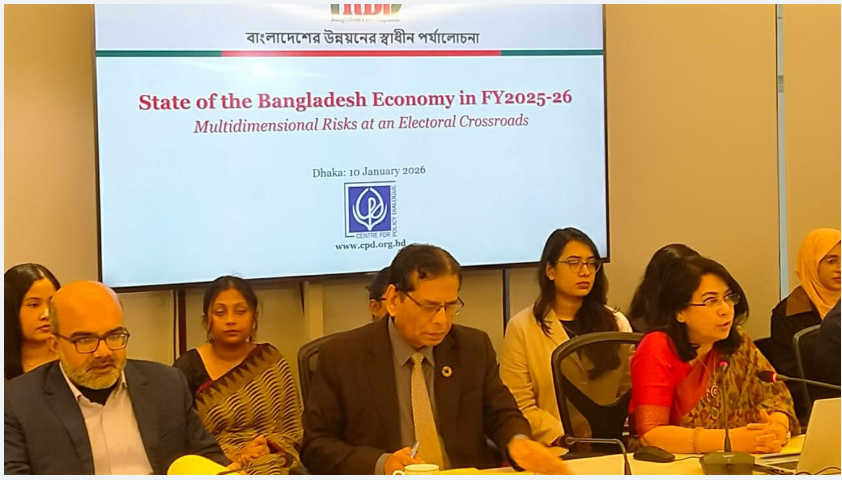 আজ (শনিবার) ধানমন্ডিতে প্রতিষ্ঠানটির কার্যালয়ে ‘বাংলাদেশ অর্থনীতি ২০২৫-২৬: নির্বাচনী বাঁকে বহুমাত্রিক ঝুঁকি’ শীর্ষক মিডিয়া বিফ্রিংয়ে সিপিডি’র নির্বাহী পরিচালক ড. ফাহমিদা খাতুন এ বিষয়ে তথ্য-উপাত্ত উপস্থাপন করেন।
