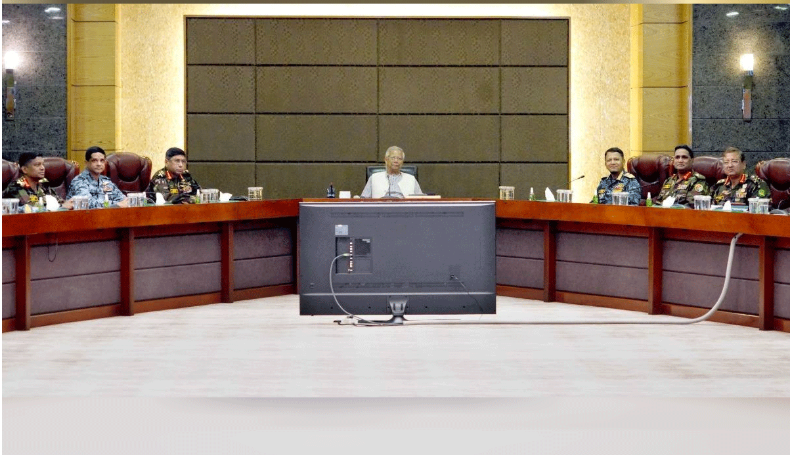 আসন্ন ত্রয়োদশ জাতীয় সংসদ নির্বাচন ও গণভোট-২০২৬ উপলক্ষে সেনাসদরে সশস্ত্র বাহিনীর ঊর্ধ্বতন কর্মকর্তাদের সঙ্গে মতবিনিময় করেছেন অন্তর্বর্তীকালীন সরকারের প্রধান উপদেষ্টা প্রফেসর ড. মুহাম্মদ ইউনূস। সোমবার (২৬ জানুয়ারি) সেনাসদরের হেলমেট অডিটোরিয়ামে