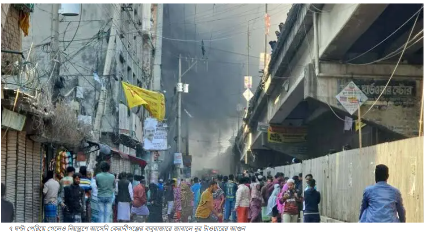 রাজধানীর কেরানীগঞ্জে ‘জাবালে নুর টাওয়ার’ নামের একটি বহুতল ভবনে লাগা আগুন অবশেষে নিয়ন্ত্রণে আনার তথ্য জানিয়েছে ফায়ার সার্ভিস। প্রায় ১২ ঘণ্টা পর শনিবার (১৩ ডিসেম্বর) বিকেল ৫টা ৩ মিনিটে আগুন