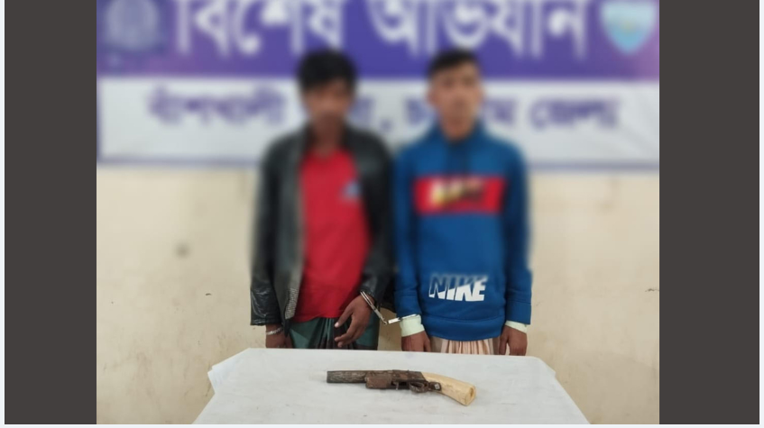 চট্টগ্রামের বাঁশখালীতে আগ্নেয়াস্ত্রসহ দুইজনকে গ্রেপ্তার করেছে পুলিশ। শনিবার (১৩ ডিসেম্বর) মধ্যরাতে জেলা গোয়েন্দা শাখা ও থানা পুলিশের অভিযানে তাদের গ্রেপ্তার করা হয়। গ্রেফতারকৃতরা হলেন আহম্মদ মোস্তফা (২৬) এবং অনিক কান্তি