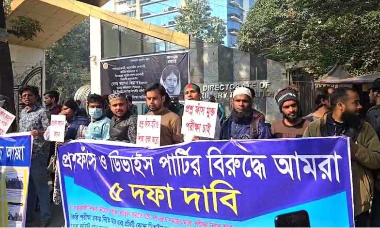 প্রশ্নফাঁস ও ডিজিটাল ডিভাইসের মাধ্যমে জালিয়াতিসহ নানা অভিযোগে গত ৯ জানুয়ারি অনুষ্ঠিত সরকারি প্রাথমিক বিদ্যালয়ের সহকারী শিক্ষক নিয়োগ পরীক্ষা বাতিলের দাবিতে বিক্ষোভ-সমাবেশ করেছেন একদল নিয়োগপ্রত্যাশী। তাদের দাবি আমলে নিয়ে অভিযোগ