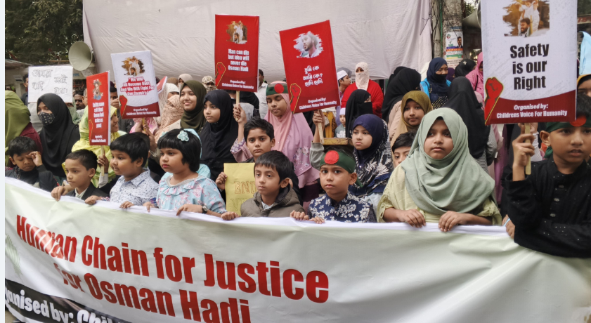ইনকিলাব মঞ্চের মুখপাত্র ও জুলাই আন্দোলনের যোদ্ধা শহীদ শরিফ ওসমান হাদির হত্যাকারীদের গ্রেপ্তার ও দ্রুত বিচার, জুলাই যোদ্ধাদের নিরাপত্তা এবং সকল নাগরিকের পূর্ণাঙ্গ নিরাপত্তা নিশ্চিতের তিন দফা দাবি জানিয়েছে চিলড্রেন