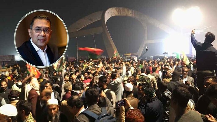 বিএনপির ভারপ্রাপ্ত চেয়ারম্যান তারেক রহমানকে স্বাগত জানাতে ৩০০ ফিটের উদ্দেশ্যে ঢাকার বিভিন্ন রাস্তায় মানুষের ঢল নেমেছে। ভোরের আলো ফোটার সঙ্গে সঙ্গে মহাখালী থেকে বিমানবন্দর সড়কের রাস্তায় মানুষের ঢল। পায়ে হেঁটে