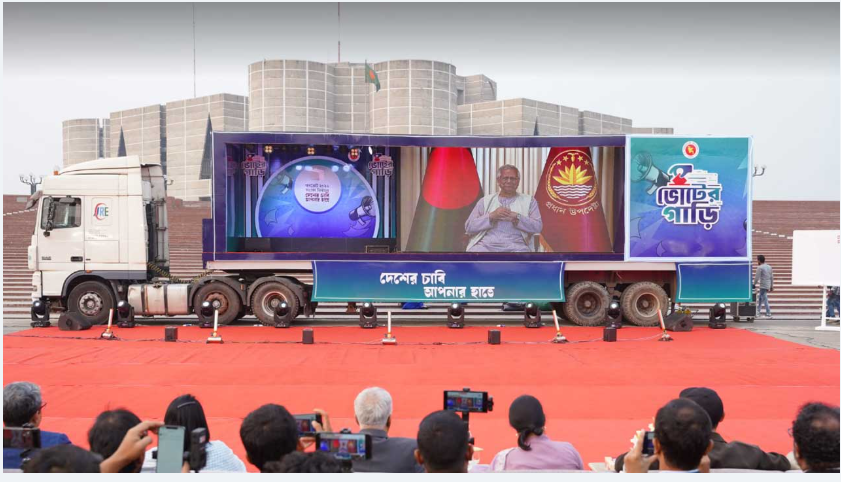 ত্রয়োদশ সংসদ নির্বাচন ও জুলাই জাতীয় সনদের বিষয়ে গণভোটের বিষয়ে সারাদেশে প্রচারণার লক্ষ্যে যাত্রা শুরু করেছে দশটি ভোটের গাড়ি— সুপার ক্যারাভান। সোমবার (২২ ডিসেম্বর) জাতীয় সংসদ ভবনের দক্ষিণ প্লাজায় আনুষ্ঠানিক