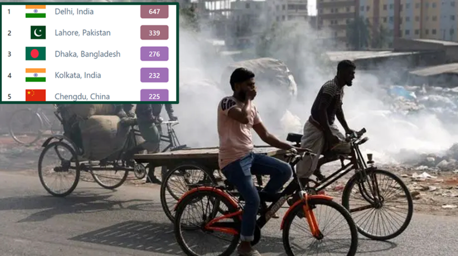 বায়ুদূষণে বিশ্বের শহরগুলোর তালিকায় ৬৪৭ স্কোর নিয়ে শীর্ষে রয়েছে ভারতের দিল্লি, শহরটির বাতাসের মান ‘বিপজ্জনক’। এদিকে ২৭৬ স্কোর নিয়ে তৃতীয় অবস্থানে রয়েছে বাংলাদেশের রাজধানী ঢাকা। যার বাতাসের মান ‘খুব অস্বাস্থ্যকর’