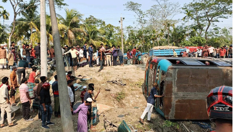 ভোলা-চরফ্যাশন সড়কের লালমোহন উপজেলার গজারিয়া এলাকায় যাত্রীবাহী বাস ও অটোরিকশার মুখোমুখি সংঘর্ষে মা-ছেলেসহ তিনজন নিহত হয়েছেন। এ ঘটনায় বাসটি সড়কের বাইরে ছিটকে পড়ে অন্তত ৩০ জন যাত্রী আহত হয়েছেন। সোমবার
