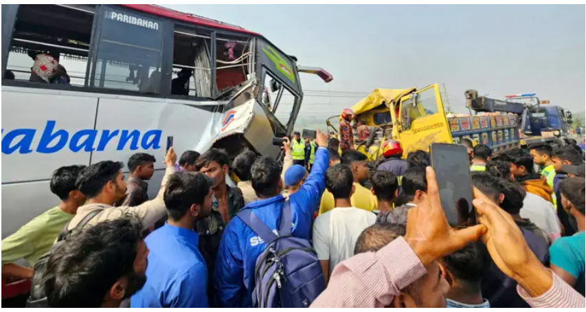 ফরিদপুরের ভাঙ্গায় বাসের সঙ্গে মুখোমুখি সংঘর্ষে ট্রাকের চালক ও হেলপার নিহত হয়েছেন। এতে আহত হয়েছেন অন্তত ১৫ জন। শনিবার (২৪ জানুয়ারি) বেলা সাড়ে ১১টার দিকে ঢাকা-বরিশাল মহাসড়কের ভাঙ্গা উপজেলার প্রাণিসম্পদ