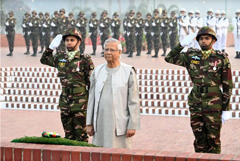 জাতীয় স্মৃতিসৌধে মহান বিজয় দিবসে বীর শহীদদের উদ্দেশে শ্রদ্ধা নিবেদন করেছেন প্রধান উপদেষ্টা প্রফেসর ড. মুহাম্মদ ইউনূস। মঙ্গলবার (১৬ ডিসেম্বর) সকালে জাতীয় স্মৃতিসৌধে ফুল দিয়ে স্বাধীনতার জন্য প্রাণ উৎসর্গ করা