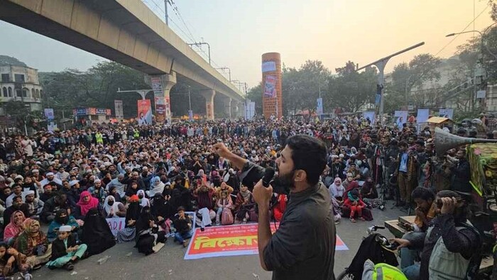 শরিফ ওসমান হাদি হত্যার বিচার দাবিতে রাজধানীর শাহবাগ মোড় অবরোধ করে অবস্থান কর্মসূচি পালন করছে তার সংগঠন ইনকিলাব মঞ্চ। সরকারের উপদেষ্টারা শাহবাগে হাজির হয়ে জনগণের সামনে দাঁড়িয়ে জবাব না দেওয়া